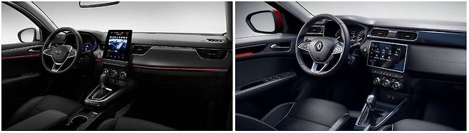 실내는 차이가 더 또렷하다. XM3는 센터페시아에 9.3인치 세로형 모니터를 심은 반면, 아르카나는 비교적 평범한 8인치 가로형 모니터를 넣었다. 르노삼성차 설명에 따르면 세로형 모니터는 동급 최초라고. 서로 다른 모니터를 달면서 대시보드도 거의 통째로 바뀌어, 두 차는 송풍구 모양부터 제각각이다.