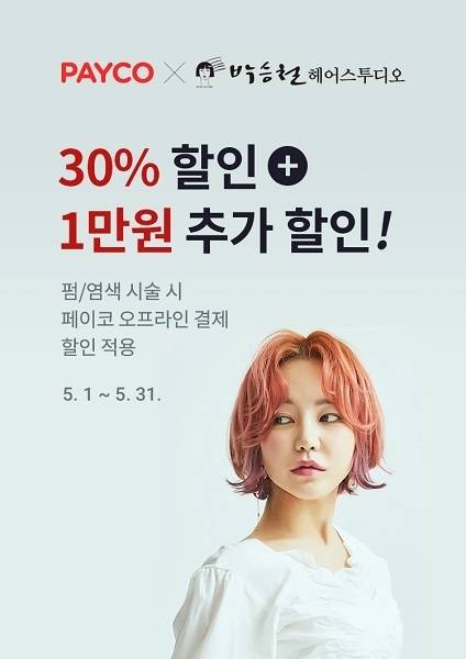 박승철헤어스투디오 5월 한 달간 NHN엔터테인먼트의 간편결제 시스템 페이코(PAYCO) 할인 프로모션을 진행한다.