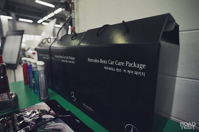 입고 직후, 벤츠 순정 카케어 케미칼 패키지를 사용해 내외관을 가장 깨끗한 상태로 만들고 육안으로 전반적인 상태를 체크한다. 시운전을 통해 성능이 제대로 나오는지, 잡음은 들리지 않는지 등 여러가지를 꼼꼼히 살펴본다.