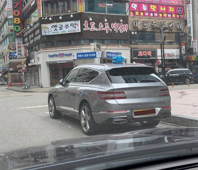 한 달 전 개인택시로 등록해 영업 중인 G80이 주목을 받은 데 이어 제네시스 브랜드의 또 따른 모델의 택시가 포착돼 시선을 끌고 있다. 경기도 광명에서 포착된 제네시스 GV80 개인택시는 가솔린 기본 모델로 추정된다. GV80 휘발유 2.5 터보의 기본 가격은 6037만원(개별소비세 1.5% 적용)으로 영업용에 제공되는 세제 혜택과 부가세 감면 등을 고려해도 5000만원 이상 비용이 들었을 것으로 보인다.