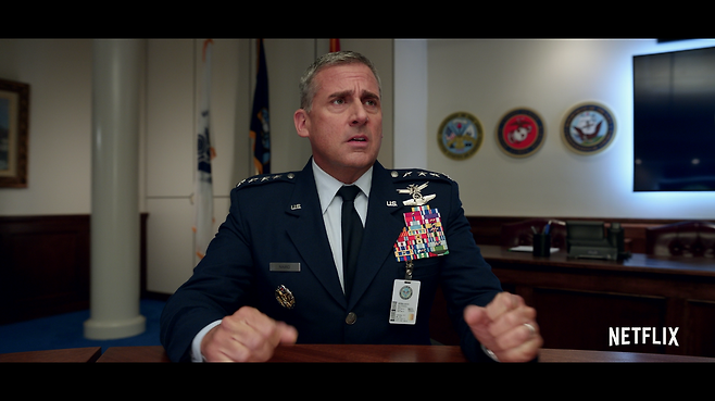 공개된 메인 예고편은 새로 창설된 미군의 병과인 '우주군'을 맡게 된 4성 장군 마크 네어드의 새로운 직장 생활을 담고 있다.