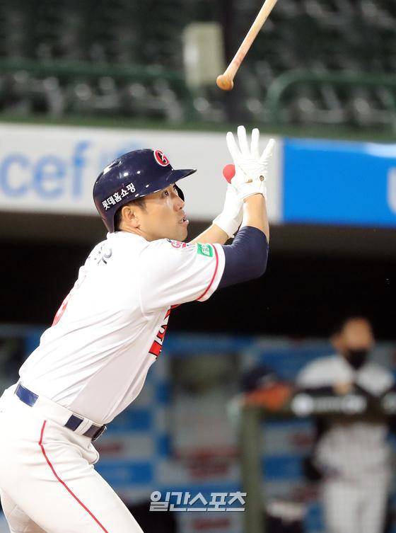 2020 프로야구 KBO리그 롯데자이언츠와 두산베어스의 경기가 12일 오후 부산 사직야구장에서 열렸다. 6회말 1사 전준우가 솔로홈런을 치고 있다.