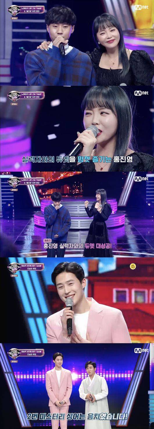 마지막으로 홍진영은 듀엣무대를 함께할 최종 1인으로 4번 참가자를 뽑았다. 남다른 비주얼로 여심을 사로잡았던 2번 참가자는 음치가 맞았다. 홍진영은 '산다는 건'을 부르며 최종 선택한 4번과 듀엣무대를 펼쳤다. 4번 참가자의 정체는 모두의 예상대로 실력자였고 홍진영은 실력자와 듀엣에 성공했다. /mk3244@osen.co.kr