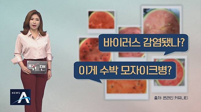 "수박이 바이러스에 감염된 거 같다" "말로만 듣던 수박 모자이크병이냐"는 문의가 한 달 사이 1백 건 넘게 올라오고 있는데요. '수박 모자이크병 괴담' 사실인지 따보겠습니다.
