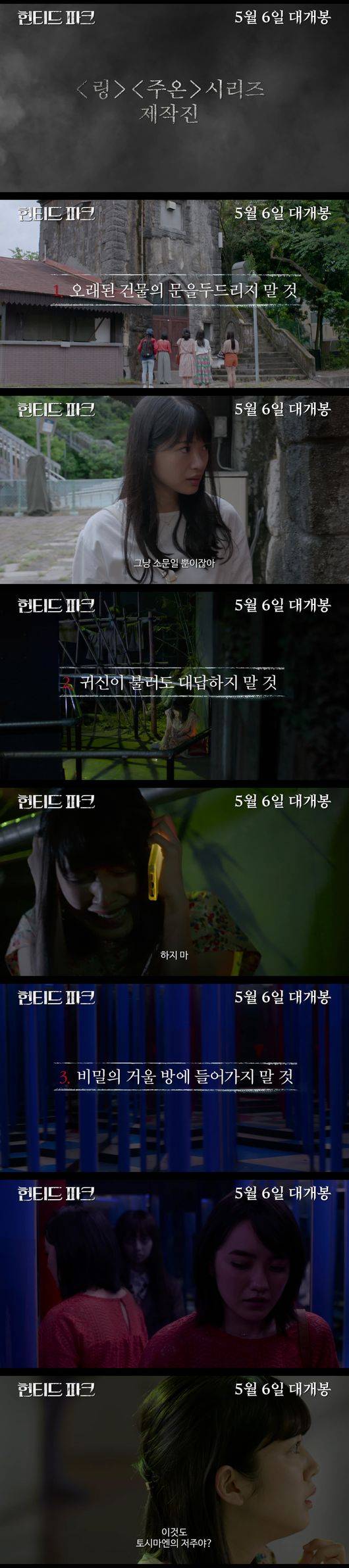 [OSEN=하수정 기자] J호러의 전성기를 이끈 '링' '주온' 시리즈 제작진의 참여로 화제를 모으고 있는 영화 '헌티드 파크'가 5월 6일 개봉을 확정하며 메인 예고편을 공개했다.