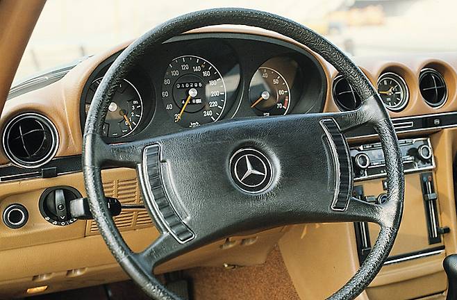 1971년 350SL로드스터에 도입된 4스포크 세이프티 스티어링 휠은 충격 흡수장치가 있는 넓은 패딩 플레이트 덕분에 더 나은 운전자 보호 기능을 제공했다. 각각의 스포크는 지지대 역할을 했으며, 충돌시 힘을 흡수하고 핸들 림이 부러지지 않는 방식을 적용했다. 오랫동안 유지되었던 경적 링은 버튼형태로 바뀌어 스티어링 휠 중앙으로 이동했다.