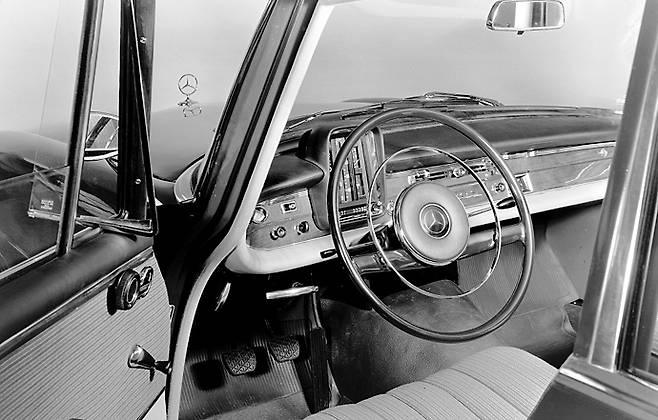 1959년 메르세데스 벤츠는 W111 모델을 통해 사고 방지 측면에서 자동차 엔지니어링에 혁명을 일으켰다. 이 세단은 세계 최초로 안전한 탑승자 보호구역, 충격흡수 존, 충돌시 부상 위험을 줄여주는 새로운 안전 스티어링 휠을 장착했다. 이전의 스티어링 휠은 사고 시 운전자가 스티어링 휠과 정명으로 부딪히며 심각한 부상이 자주 발생했다. 안전성을 더욱 높이기 위해 메르세데스 벤츠는 텔레스코픽 스티어링 칼럼과 충격 흡수장치를 갖춘 특허 받은 안전 스티어링 시스템을 도입해 1967년 자사 차량에 표준 장착했다.