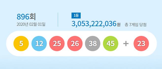 제896회 로또 당첨번호 '5, 12, 25, 26, 38, 45'
