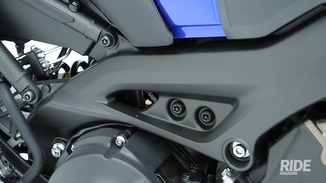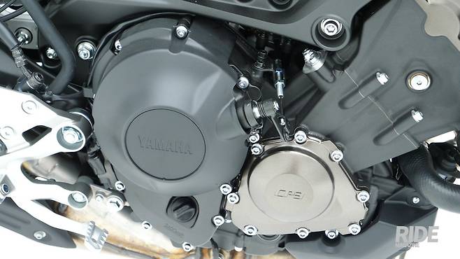 CP3라는 엔진 케이스의 각인은 크로스플레인 크랭크샤프트 기술을 접목했다는 의미다. MotoGP 기술로서 YZF-R1에는 4기통 엔진으로 적용되어 있다. 트랙션 성능을 높이고 독특한 엔진음을 낸다.