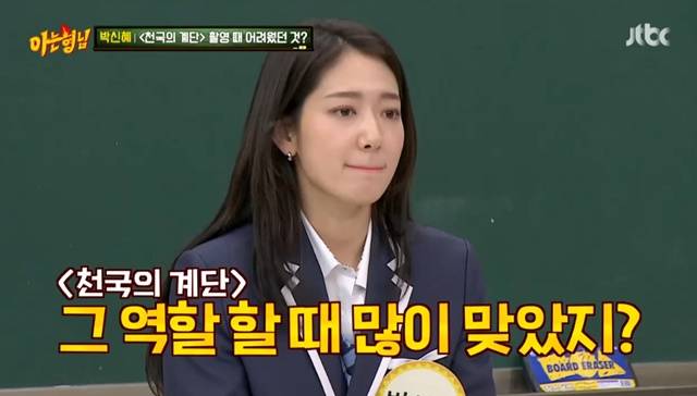 3월 7일 방송된 JTBC '아는 형님'에서 박신혜는 "'천국의 계단'에서 최지우 아역으로 나왔다. 그때 정말 어려웠던거 하나가 있었다"고 말했다.