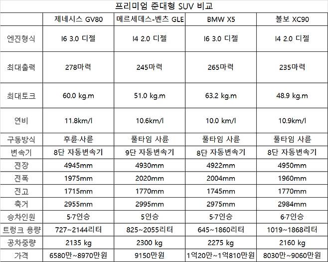●가성비를 따진다면 XC90과 GV80…브랜드 가치를 중시하면 GLE