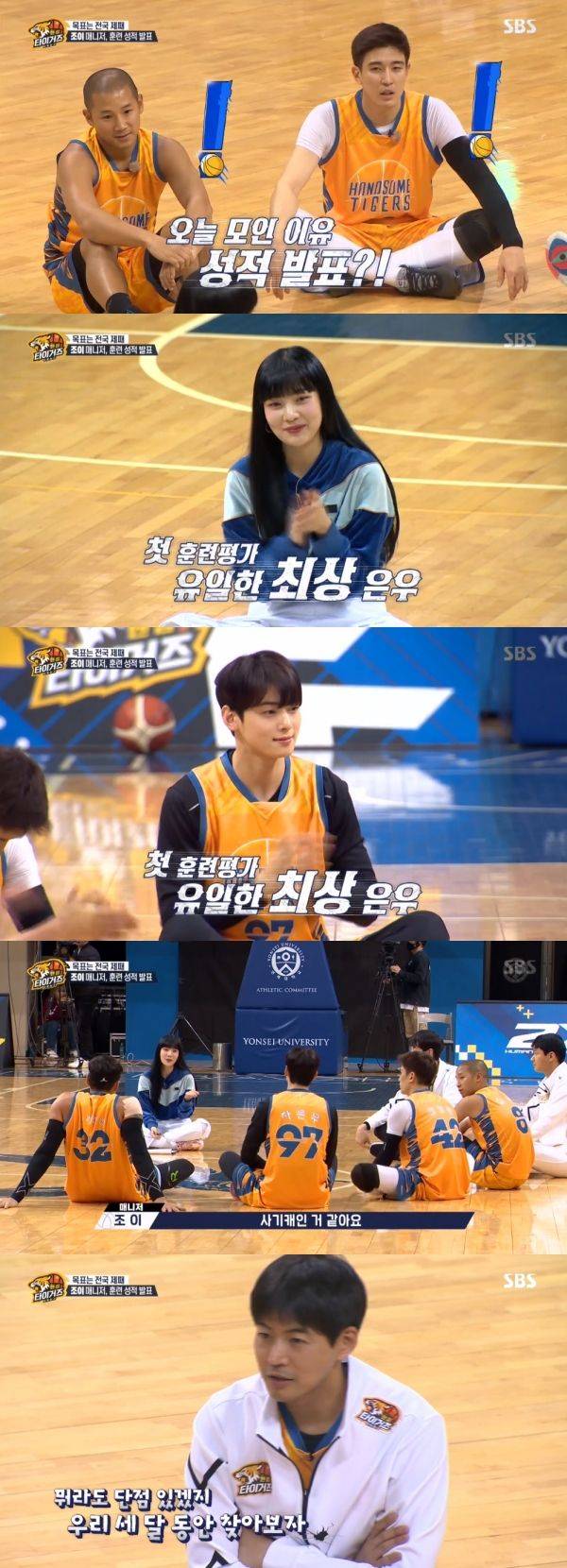 24일 방송된 SBS 리얼 농구 예능 '진짜 농구, 핸섬 타이거즈'(이하 '핸섬타이거즈')에서는 설 특별판 방송 '어린 호랑이들의 농구 캠핑'으로, 매니저 조이가 훈련 성적을 발표했다.