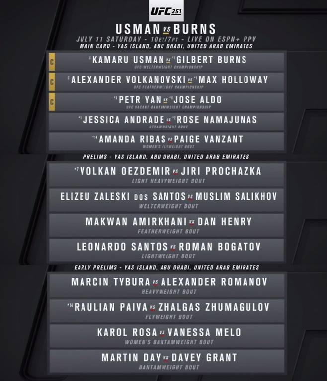 ■ UFC 251 (7월 12일 일요일)