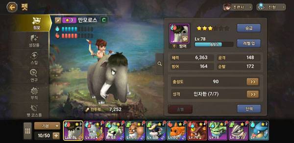 각각의 펫은 별(★)로 나타나는 '성급'과 알파벳 등급으로 나타나는 '성장률'을 태생적으로 보유하고 있다. 고유 능력치는 펫의 '성급'과 '성장률'을 통해 결정되며, 같은 펫이더라도 '성장률'에 따라 능력치에 차이가 있으므로 가급적 다양한 시도를 통해 '성장률'이 높은 펫을 획득하는 것이 좋다. 이외에도 스킬 레벨업이나 펫 연구, 부적 장착 등을 통해 펫의 추가 능력치 상승이 가능하다.