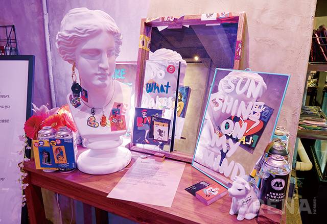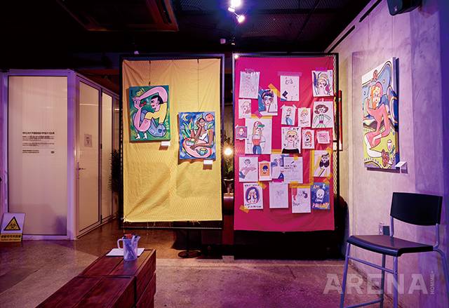 바쁜 일상을 지나치다 보면 취향을 잊어버릴 때가 있다. 지금껏 추구하고 사랑하던 감성이 흐릿해질 때 그것들을 되찾기 위해 일상으로부터 도피하고 싶어진다. 하지만 사람들이 북적이는 문화 공간은 집중하기 힘들다. 나인앤드 벙커는 취향을 찾아주는 소규모 문화 공간이라고 할 수 있다. 시각예술 콘텐츠 기업 ‘나인앤드’가 운영한다. 아기자기한 망원동 골목에 어두운 지하로 인도하는 검은색 문이 있다. 입구부터 대피소나 방공호 느낌을 물씬 풍긴다. 계단을 내려가면 화려한 색감의 조명들이 맞이한다. 조명이 비추는 곳에는 감각적인 그림들이 걸려 있다. 그림 옆에는 작은 메모지가 붙어 있다. 작품 내용을 압축한 글 한 줄. 2020년은 아티스트 ‘아갸미’가 첫 전시로 문을 열었다. ‘난 예뻐’라는 제목으로 아갸미만이 추구하는 미의 기준을 작품 속에 녹여냈다. 전시는 매달 새로운 아티스트와 메시지로 운영된다고 한다. ‘나인앤드 랩’도 선보인다. 9명 이상의 현업 아티스트로 구성된 멤버십 제도로 회원권을 구매하면 3개월 동안 나인앤드 커뮤니티를 즐길 수 있다. 커뮤니티에서는 현업 작가에게 그림을 배울 수 있는데 프리 드로잉부터 원데이 클래스까지 다채롭게 구성된다. 잊고 있던 취향을 되찾기에는 제격이다. “나인앤드 벙커는 대중이 최대한 쉽고 가깝게 즐길 수 있는 전시와 콘텐츠를 만들기 위해 고민해요. 관객이 직접 그림을 그리는 참여형 아트워크도 준비하고요. 장르에 국한되기보다는 대중과 소통할 준비가 되어 있고 다양한 시도를 좋아하는 새로운 아티스트들을 소개하려 합니다.” 이재훈 대표가 말했다. 지친 일상을 잠시 접어두고 나인앤드 벙커 ‘대피소’로 떠나고 싶어졌다. 잊었던 나만의 취향을 찾기 위해.