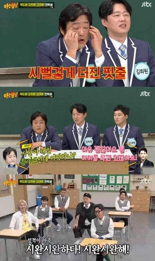 곽도원은 임시완에게 감동받았던 사연을 고백했다. 곽도원은 "영화 '변호인' 촬영 당시 내가 임시완을 고문하며 때리는 연기를 해야 했다. 격한 연기를 끝내고 나니까 시완이의 흰자 핏줄이 터졌더라. 시뻘겋게 됐다"라며 "'내일 콘서트인데 어떡하냐'고 물으니까 시완이가 '형. 아이돌은 특권이 있다. 무대에서 선글라스 끼면 된다"고 했다"고 전했다. 이어 "어린 친구가 오히려 나를 배려해줬다. 성격이 시완시완(시원)하다"고 칭찬했다.