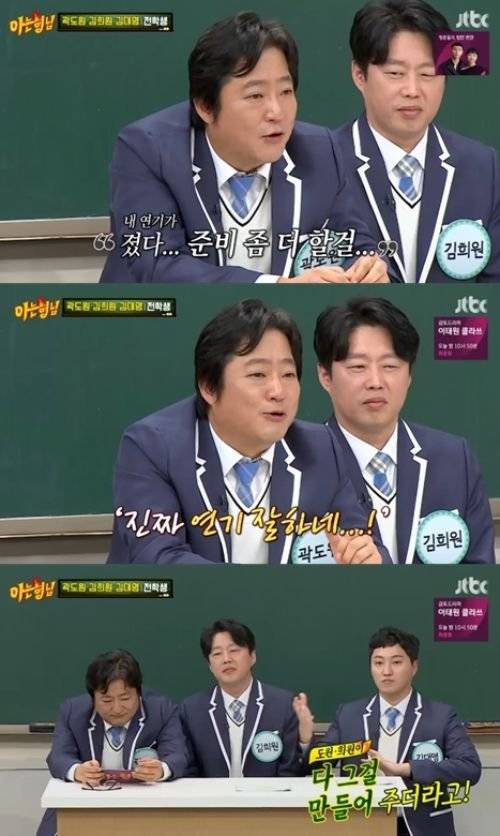 영화 '신의 한 수: 귀수 편' 홍보 당시 출연했던 김희원은 두 번째 '아형고' 전학에 "당시 방송 나가고 반응이 되게 좋았다. 잘생겼다는 반응도 많았다"며 흐뭇해했다. 예능에서 보기 힘든 곽도원, 김대명은 "정신 차려보니 교복을 입고 있더라", "식은땀이 났다"고 극도의 긴장감을 나타냈다.