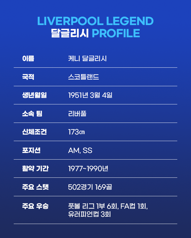 코로나19바이러스로 세계의 축구 시계가 멈춰 섰다. <베스트 일레븐(b11)>이 축구가 고픈 이들을 위해 새로운 연재물을 준비했다. 해외 클럽을 대표하는 최고의 레전드들을 소개하는 기획, 이름 하여 <레전드 타임머신>이다. 매주 화·목요일에 연재되는 <레전드 타임머신>을 통해 클럽을 이끌고 지탱해 온 여러 전설들의 이야기를 만끽하시라. 18번째 선수는 1980년대 리버풀의 황금같던 시기를 이끈 케니 달글리시다./ 편집자 주