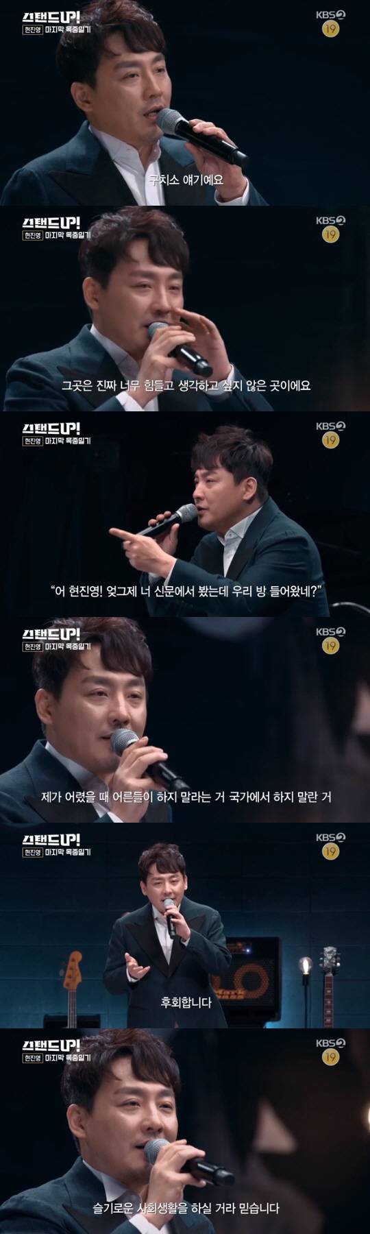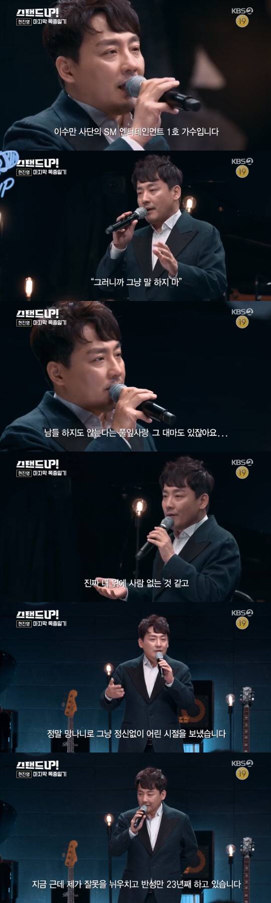 현진영은 11일 방송된 KBS 2TV 코미디 쇼 '스탠드 업'에 출연해 화려했던 전성기와 지난 잘못에 대한 후회를 털어놨다.
