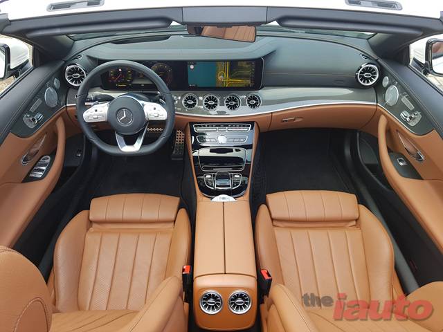 실내공간은 소프트탑이 열려 있을 때에도 스포티하면서도 우아한 외관 디자인과 완벽한 조화를 이뤄 한 차원 높은 프리미엄 카브리올레의 디자인을 완성한다. E클래스의 새로움을 느끼도록 구성된 실내에는 두 개의 12.3인치 고해상도 디스플레이인 와이드 스크린 콕핏 디스플레이 및 AMG 라인 인테리어 패키지 등이 기본 적용돼 고급스러움과 운전의 편의성을 전달하기 위한 조건을 갖추게 됐다.