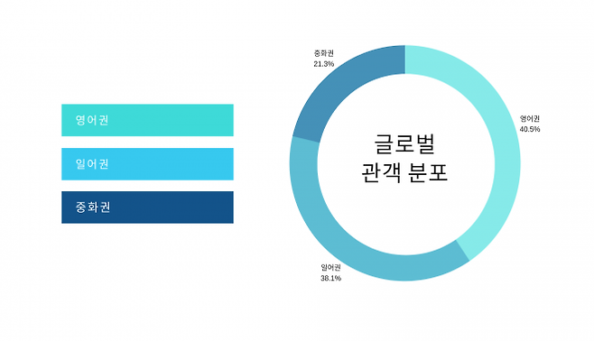 인터파크의 전체 티켓 판매 금액 중 가장 높은 비중을 차지하고 있는 것은 단연 콘서트 장르로 절반이 넘는 65%를 기록하고 있다. 그중 영어 사이트를 통한 티켓팅이 49%, 중국어 사이트를 통한 티켓팅이 27.6%를 나타냈고 일본어 사이트를 통한 티켓팅도 23.4%로 중국어 사이트의 판매 금액과 큰 차이를 보이지 않는다는 것을 알 수 있다.
