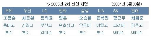 마지막 관문이 남았다. (2차) 지명 순서다. 삼성은 5번째다. 앞에 4팀이 있다. 그들이 모두 다른 선수를 찍어야한다. 그래야 차례가 온다. 1번은 롯데다. 용마고 투수 조정훈을 지명했다. 그리고 다음 두산은 서동환이었다.