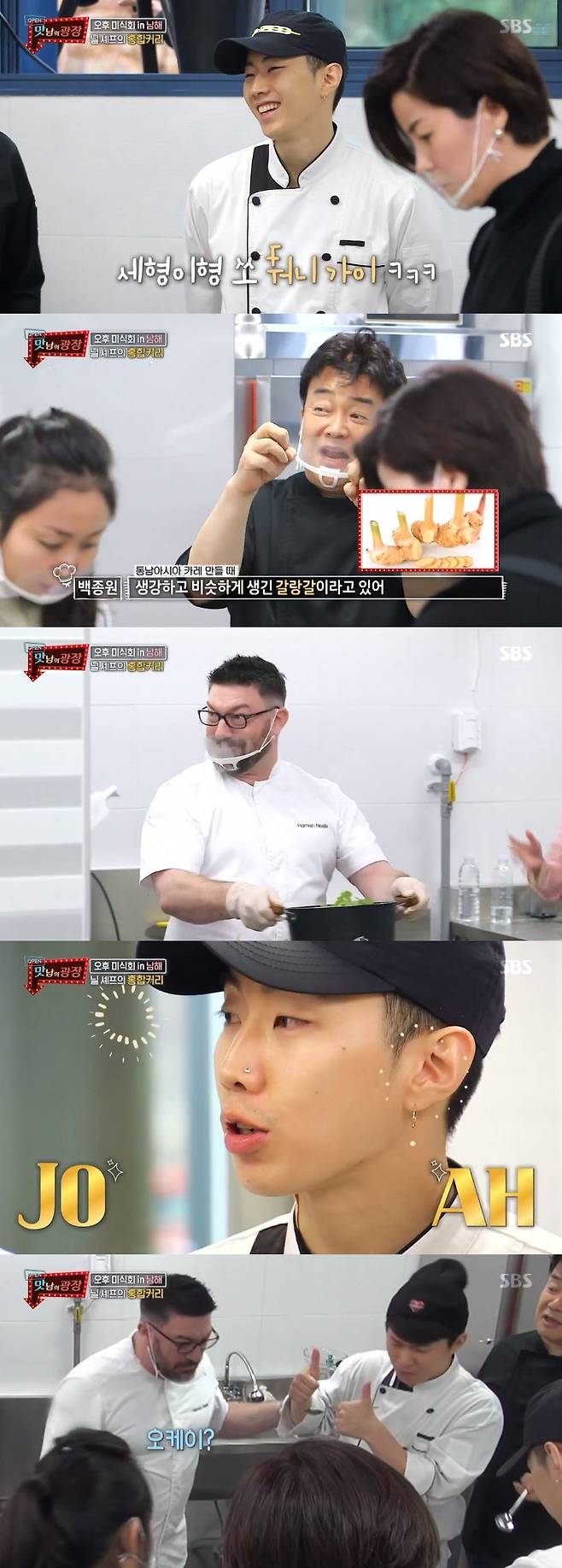 앞서 지난 12일 방송된 '맛남의 광장'에서는 홍합 요리 미식회가 열렸고, 백종원과 훈연 멸치로 인연을 맺은 H호텔 닐 하미쉬 셰프가 등장했다. 호주 사람인 그를 위해 박재범이 나서 통역을 맡았다. 백종원은 음식 관련 영어이기 때문에 하미쉬의 말을 다 알아듣고 멤버들에게 설명하는 모습을 보여 눈길을 끌었다.