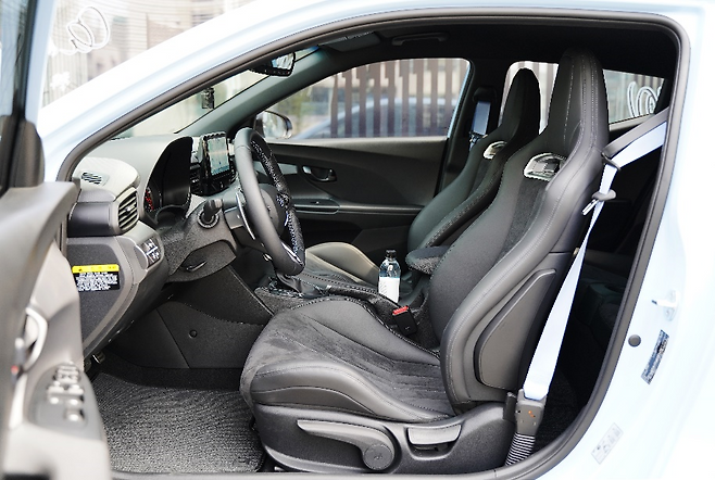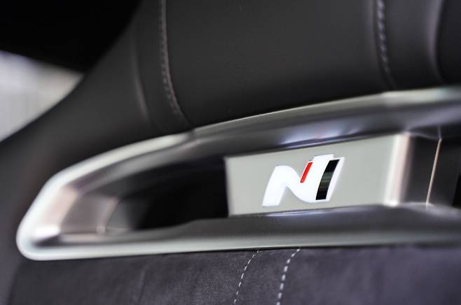N 라이트 스포츠 버켓 시트는 120만원에 제공되는 옵션 사양이다. 공격적인 형상이나 몸 닿는 부위에 더해진 스웨이드, 일체형 헤드레스트 아래 적용된 N 조명 등이 보기 좋다. 기존 시트는 허리와 허벅지를 받치는 부분이 부드러웠지만, 새로운 시트는 한층 딱딱하기도 하고 스웨이드가 적용된 덕분에 몸을 아주 잘 잡아준다. 단 시트 포지션이 순정 시트와 같은 점은 치명적인 단점이다.