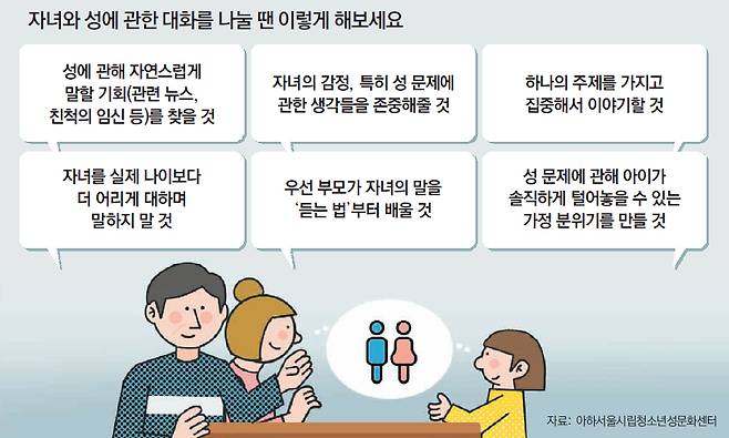 성(性)에 대한 자녀의 기습 질문은 부모들을 당황하게 만든다. 안 알려주자니 어둠의 경로로 배울까 걱정되고, 가르치자니 어느 정도까지 알려줘야 하나 고민에 빠진다. 최근 이른바 ‘n번방 사건’이 수면에 떠오르면서 어린 자녀들의 성교육에 관심을 가지는 학부모들이 부쩍 늘고 있다. 그러나 관심의 동기가 단지 ‘너무 성에 집착하면 공부를 안 하니까’, ‘밖에서 사고 치면 골치 아플까 봐’ 등에 머무는 경우가 많다.