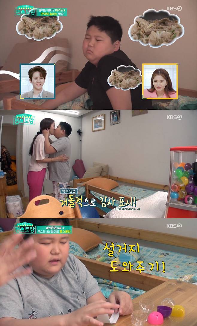 오늘도 어김없이 엄마 오윤아의 음식 냄새를 맡으며 일어난 민이는 이영자가 준 고기를 먹으며 "감사합니다"라고 인사하는가 하면, 엄마의 "맛있어?" 질문에도 긍정해 오윤아를 기쁘게 했다.