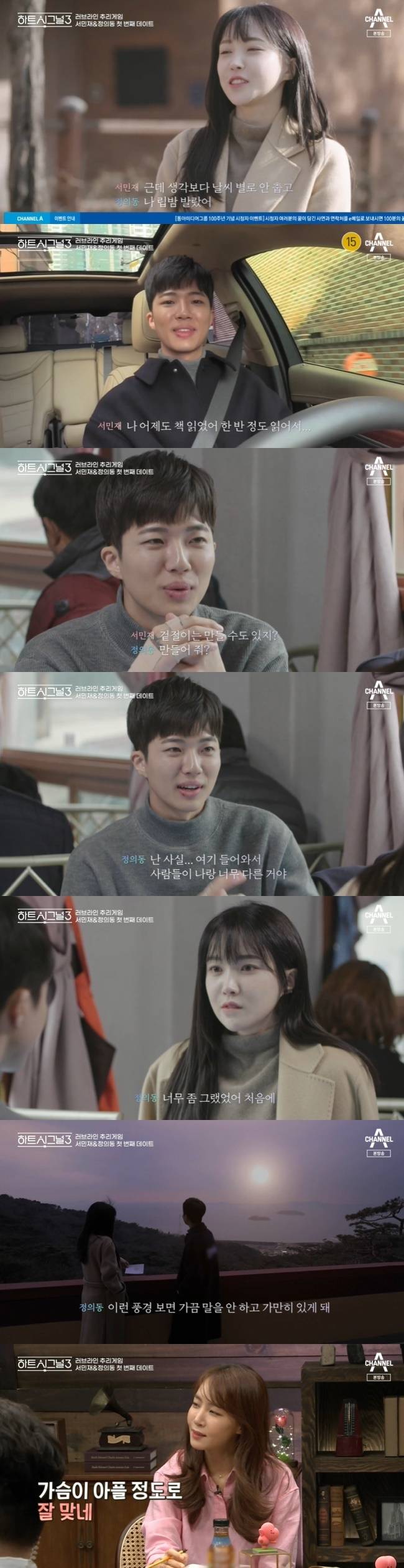 이를 본 김이나는 “뭔가 아릴 정도로 예쁜 순간이 있지 않나. 가슴이 아플 정도로 예쁘다”고 말했다. (사진=채널A '하트시그널 시즌3' 방송 캡처)