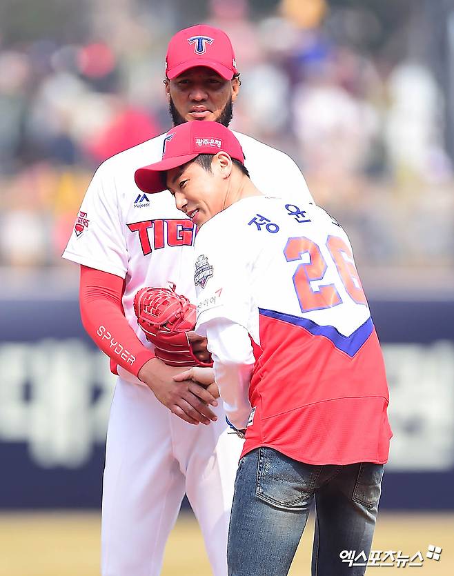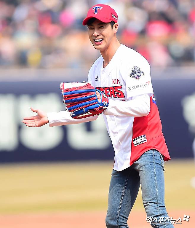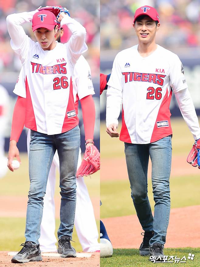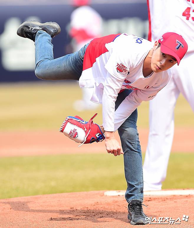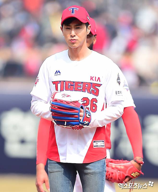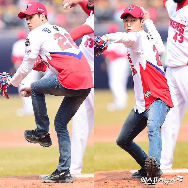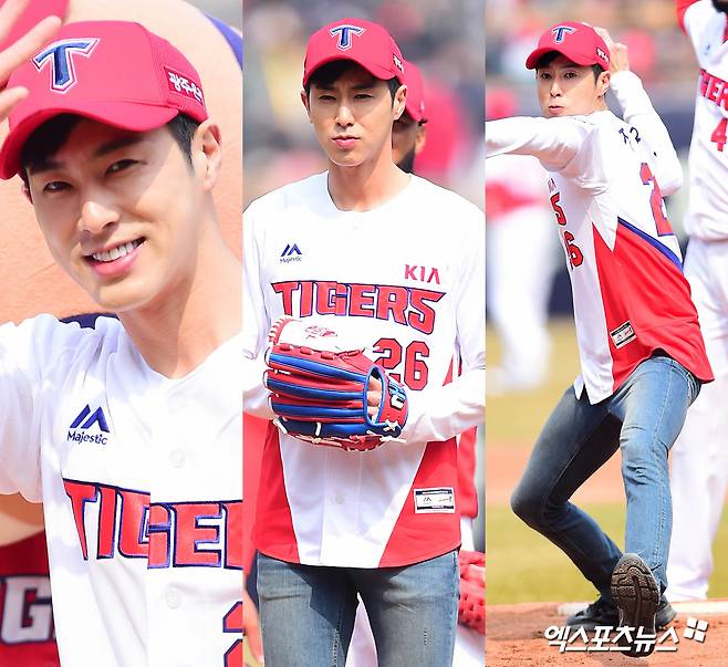 [엑스포츠뉴스 윤다희 기자] 2018년 3월 24일 광주-기아 챔피언스필드에서 열린 ‘2018 신한은행 MY CAR KBO리그’ kt 위즈와 KIA 타이거즈의 개막전 경기에서 동방신기 유노윤호(본명 정윤호)가 시구를 했다. 이날 경기는 5:4로 kt위즈가 승리했다.