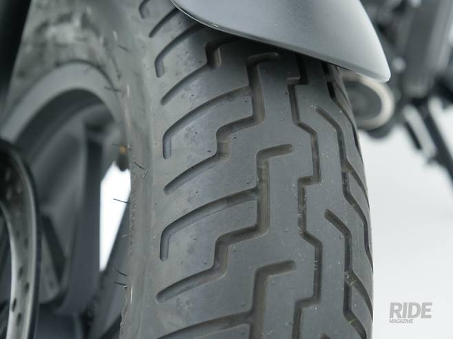 디자인은 한마디로 스타일리시하다. 작은 몸집의 스몰 바디, 그리고 짧은 휠베이스로 길이가 짧아 보인다. 그래도 앞모습에서의 존재감은 크다. 바버 스타일의 굵직한 타이어가 돋보인다. 타이어가 130mm 사이즈다 보니 포크 사이의 거리도 멀고 헤드라이트는 더 작아 보인다. 한 마디로 우람해 보인다. 앞 모습의 당당함은 엔트리 크루저라고 보기 어렵다.