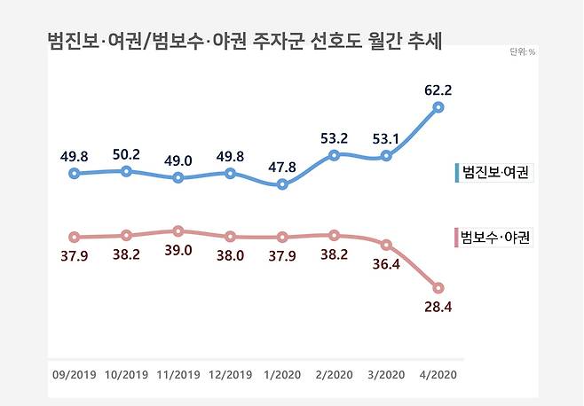 엄 소장은 범진보·여권과 범보수·야권 대선주자군의 선호도 차이가 벌어진 데 대해서도 "지금까지 보수 중심의 '기울어진 운동장'이었던 정치 지형이 진보 중심의 '역 기울어진 운동장'으로 재편된 것으로 볼 수 있다"면서 "이러한 경향은 일시적인 게 아니라, 당분간 지속될 것"이라고 예측했다.