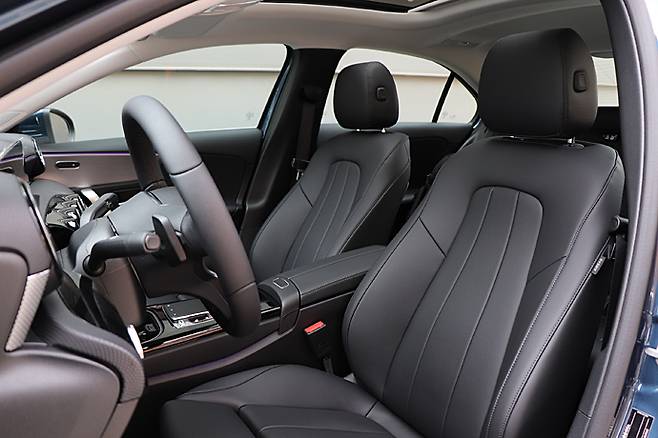 시승차는 내비게이션과 스마트폰 연동 등이 채용되지 않았다. ADAS 기능 중 ACC인 디스트로닉도 없다. 모두 옵션으로 설정됐다. 해치백과 마찬가지로 3천만 원대의 벤츠’라는 이미지를 위한 설정이다. 해치백도 그랬지만 메르세데스 벤츠라는 브랜드에 기대하는 것을 고려한다면 조금은 부족하다는 생각이다. 다기능 스포츠 스티어링 휠은 채용되어 있고 패들 시프트도 있다.