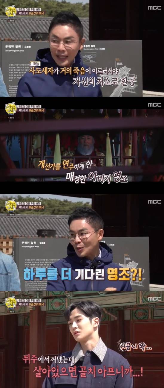 설민석은 "영조는 사도세자를 뒤주에 가둔 그날도 제시간에 식사를 한다. 뒤주에 가두고 며칠 지켜보다 다른 궁으로 가는데, 갈 때 개선가를 연주하게 한다. 적을 정벌하고 돌아올 때 연주하는 거다"라고 밝혔다.