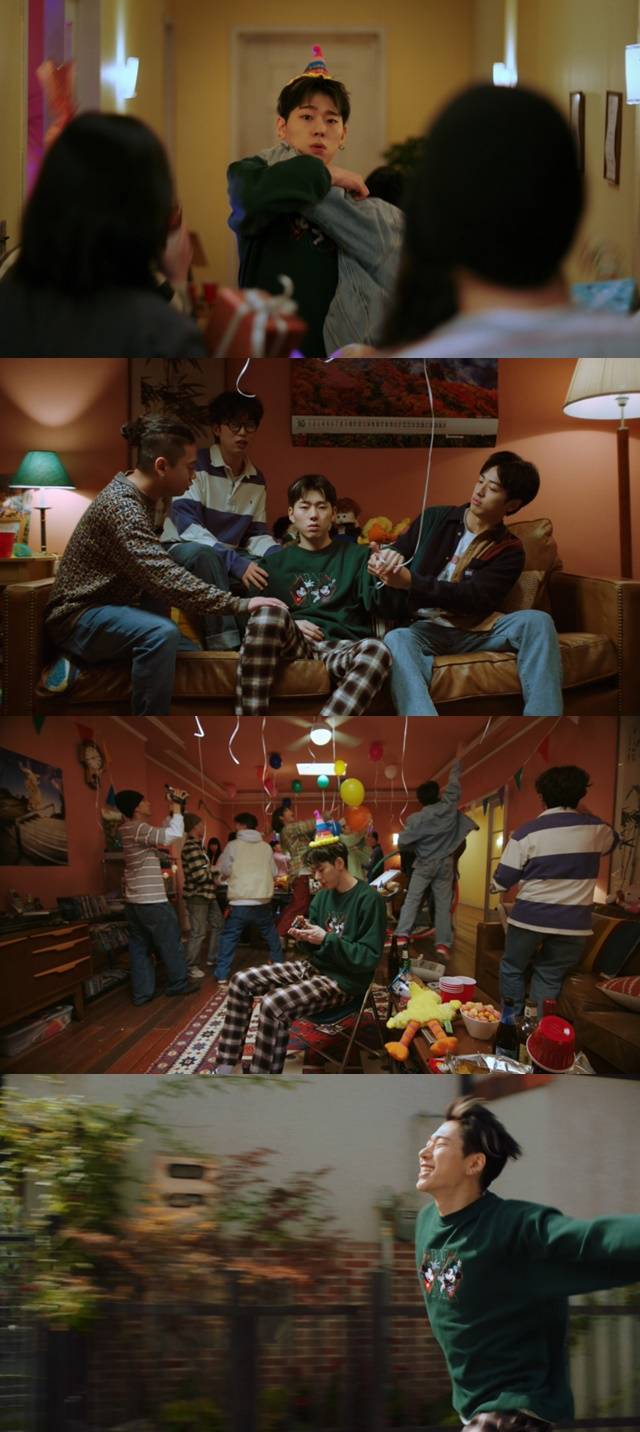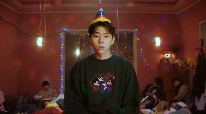 함께 공개된 뮤직비디오는 생일을 맞은 지코의 집에 제머대로 침입한 친구들, 어느새 난장판이 된 파티 현장 속 멘붕에 빠진 지코의 모습을 유쾌하게 그려냈다. 지코의 진짜 친구들이 뮤직비디오에 대거 출연해 남다른 케미를 발산했다. (사진=지코 '아무노래' 뮤직비디오 캡처)