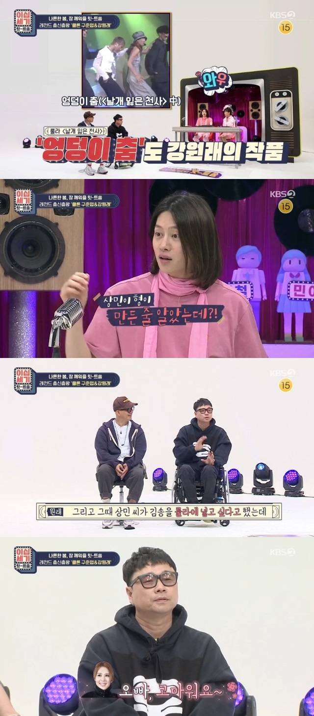 이어 강원래가 "룰라 안무 중에서 '비밀은 없어' '날개 잃은 천사'는 제가 했다"고 말하자 김희철은 "이상민 형이 한 줄 알았다"고 깜짝 놀랐다.