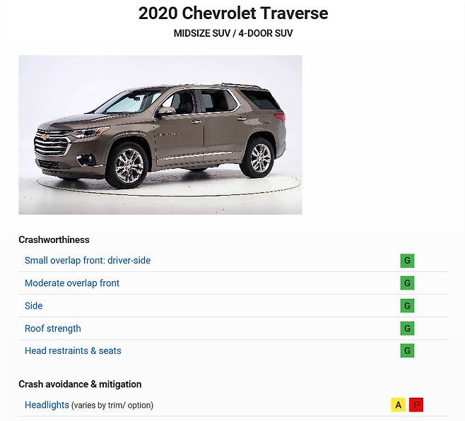 지난해 가을 국내 시장에서도 판매를 시작한 '쉐보레 트래버스(Chevrolet Traverse)'의 2020년형 미국 고속도로 안전보험협(IIHS) 충돌 테스트 결과가 최근 발표됐다.
