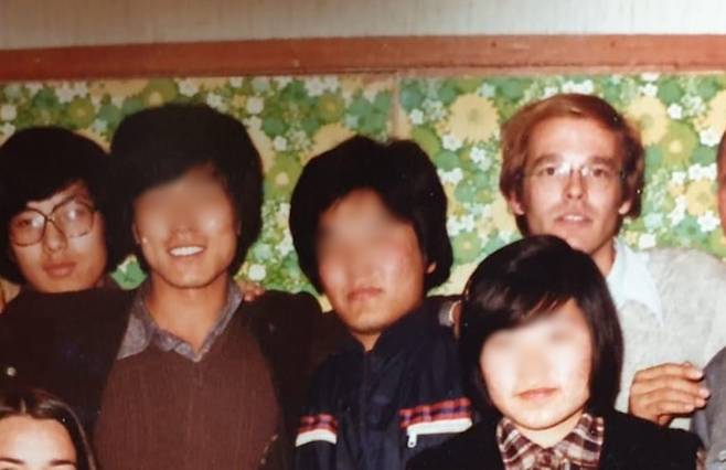 | ▲ 1980년 '광주자원봉사단'의 모습을 담은 사진 일부. 오른쪽 상단의 외국인이 평화봉사단 소속의 팀 원버그이고, 좌측 상단의 인물이 사진을 보내온 당시 전남대 의과대 1학년 안영주씨이다. |