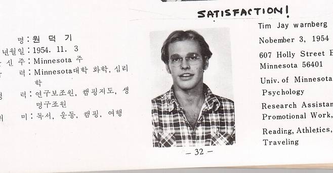 | ▲ 평화봉사단 자료집에 담겨 있는 팀 원버그. 광주에서 근무하던 그는 1980년 5.18민주화운동 당시 광주에서의 참상을 생생히 목격했다. |