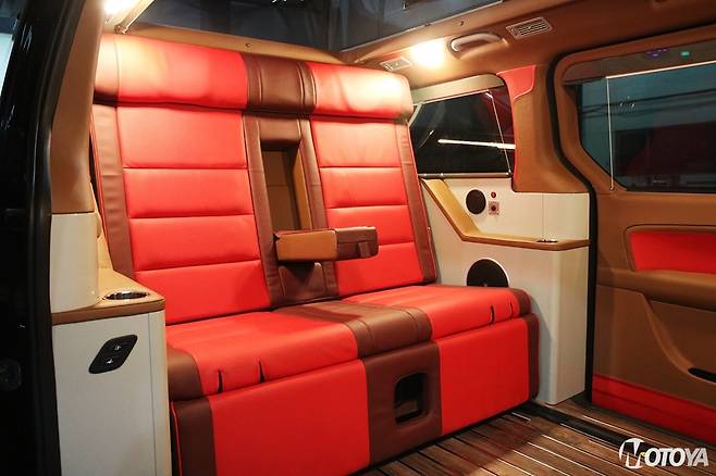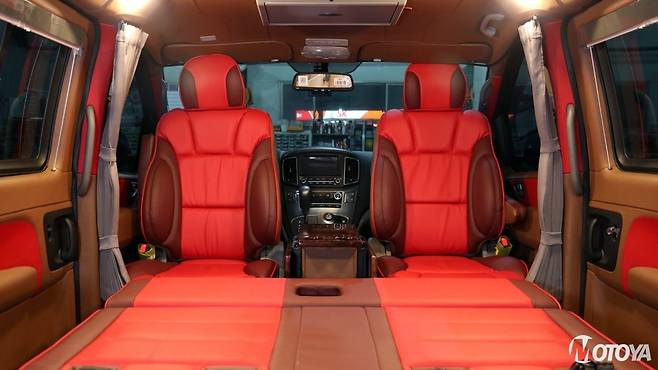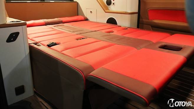 전용으로 설계된 뒷좌석 역시 최고급 가죽으로 마감되어 있어, 뛰어난 감성품질을 경험할 수 있다. 뒷좌석은 모두 전동식으로 조절되며, 전동으로 침대 변환까지 가능하여 사용이 편리하다. 이 뿐만 아니라 뒷좌석 전체에 걸쳐서 열선을 내장하여, 침대로 변환했을 경우, 전기 장판이 침대에 그대로 내장되어 있는 효과를 누릴 수 있다. 또한 종아리 받침을 침대로 변환시 확장할 수 있도록 설계하여 침대 공간을 더 넓게 사용할 수 있다.