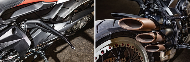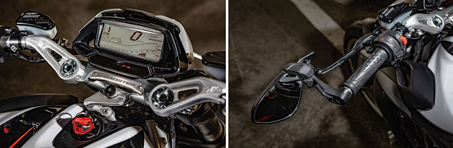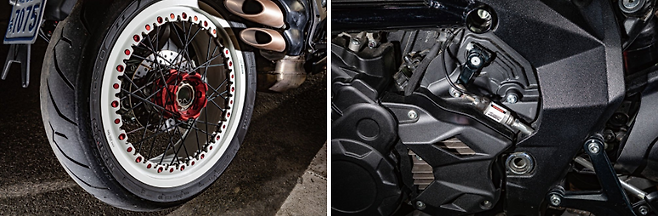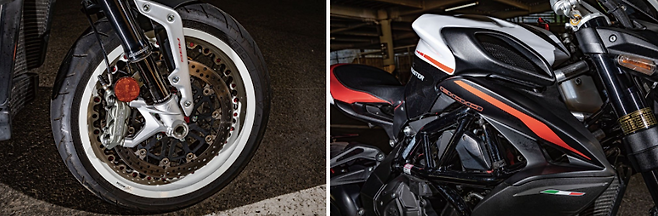 RR모델 전용의 키네오 휠도 눈길을 끈다. 절삭가공으로 정교하게 만들어져 드랙스터 RR을 더욱 특별하게 보이게 한다. 은은하게 펄이 들어간 페인팅과 섬세한 데칼까지 차체의 품질과 마감은 환상적이다. 차체 곳곳의 작은 부품 하나도 디자인된 꼼꼼한 디테일은 각도마다 새로움을 발견하게 만든다. 이 바이크를 둘러보고 살펴보는 것을 취미로 삼아도 좋을 정도로 많은 볼거리를 제공한다. MV 아구스타의 모터사이클 아츠라는 슬로건이 공감되는 멋진 디자인이다. 덕분에 정차할 때마다 자꾸만 쇼윈도에 비친 모습으로 시선을 향하게 한다. 하지만 멋진 디자인만큼이나 라이더가 멋지지 않으면 바이크가 따 놓은 점수를 까먹는 느낌이 든다. 덕분에 간만에 다이어트에 대한 의지에 불이 붙는다.(웃음)