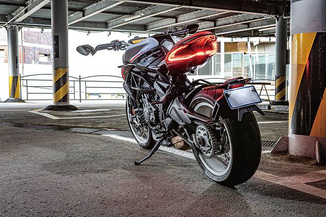 요즘 바이크는 점점 강력해지지만 그만큼 타기 쉬운 방향으로 진화하고 있다. 대부분의 브랜드가 이 흐름을 거스르지는 못했다. 200마력에 가까운 출력의 바이크로 입문하는 라이더가 늘어나고 있는 것도 이 때문이다. 바이크가 다루기 쉽고 친숙해지는 만큼 재미는 덜해진다. 하지만 MV아구스타는 조금 달랐다. 아드레날린을 어떻게 만들어내는지 잘 알고 있는 브랜드답게 드랙스터는 여전히 바이크가 주는 재미를 우선으로 하고 있었다. 전자장비의 선택만 봐도 브랜드의 성격이 보인다. 예전에는 코너에서 더 빠르게 달리기 위해 트랙션 컨트롤을 장착할 때도 ABS는 일부러 달지 않던 브랜드다. 만약 대형바이크의 ABS장착이 의무가 되지 않았다면 아마도 여전히 ABS는 달려있지 않았을 것이다.