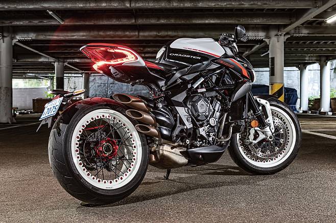 MV아구스타의 드랙스터는 전통적인 스포츠 네이키드 모델인 브루탈레를 기반으로 짧게 잘린 시트와 200mm 폭의 과장된 대형 뒷타이어로 더욱 특별하게 꾸민 스페셜 모델이다. 그리고 드랙스터 RR은 엔진 출력을 110에서 140마력으로 대폭 높이고 키네오 휠에 RR 전용 리버리를 두른 고성능 버전이다. 이 드랙스터 RR은 2018년에 유로4 적용과 함께 디자인이 업데이트된 2세대 모델이다. 국내에 공식 출시한지는 꽤 되었지만 그동안 기회가 없어 소개하지 못했는데 늦게나마 지면을 통해 소개한다.