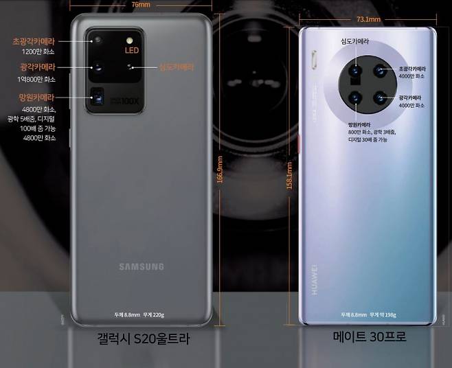 삼성전자가 2월 미국 샌프란시스코에서 개최한 ‘갤럭시 S20 시리즈 언팩(공개)’ 행사에서 100배 배율의 디지털 줌 기능을 갖춘 신형 스마트폰 ‘갤럭시 S20 울트라’를 발표했다. 지난해 9월 화웨이가 30배 디지털 줌 기능을 갖춘 스마트폰 ‘메이트 30 프로’를 공개한 지 5개월 만이다. 화질 전쟁, 카메라 개수 전쟁에 이어 초고가 스마트폰 시장에 불어닥친 ‘줌(zoom)’ 기술 전쟁을 취재했다.