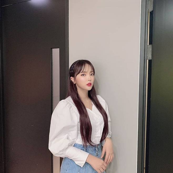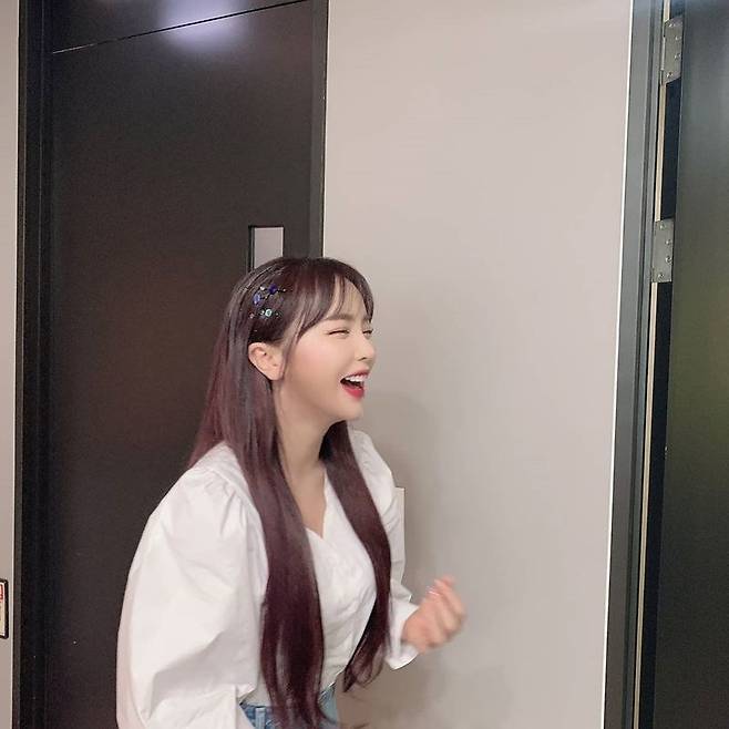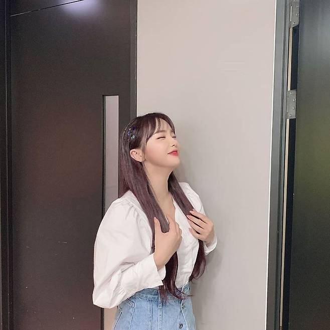 사진 속에는 새하얀 블라우스와 청바지를 입은 홍진영의 모습이 담겼다.