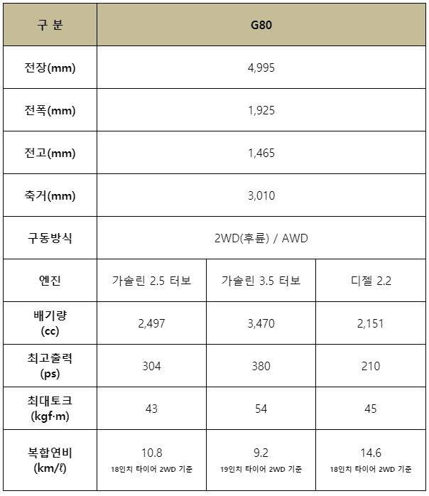제네시스는 신형 G80를 가솔린 2.5 터보, 가솔린 3.5 터보, 디젤 2.2 등 3가지 엔진 라인업으로 운영한다.