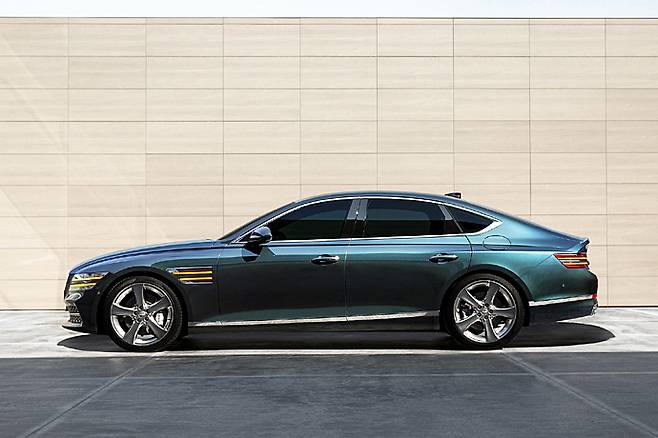 3세대 G80는 기존 대비 전폭을 35mm 넓히고 전고를 15mm 낮춰 후륜구동 세단이 갖출 수 있는 가장 세련된 비율과 당당한 모습을 구현했다.