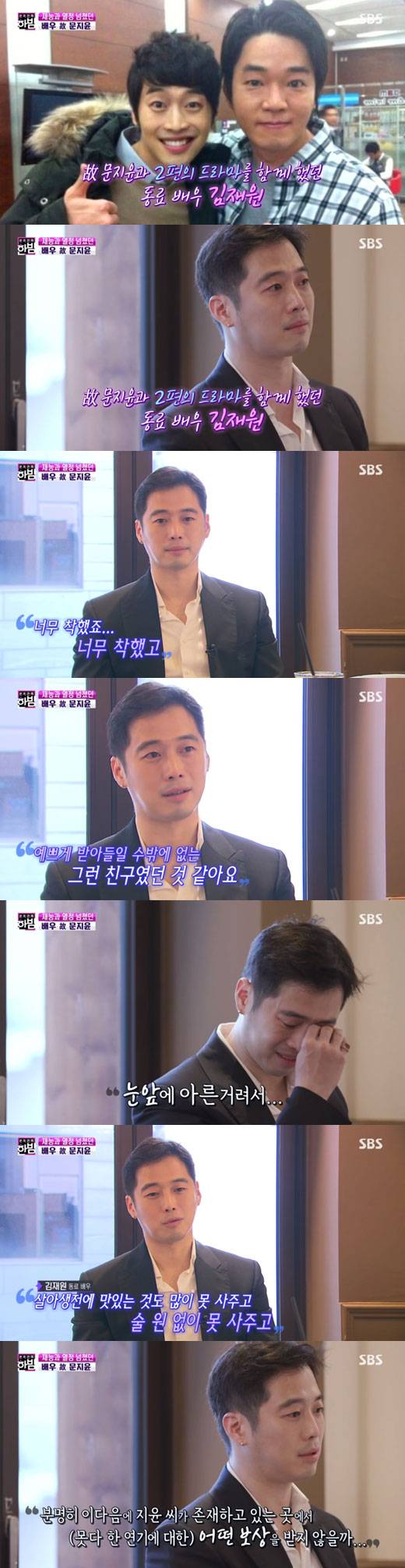 이날 방송에서 문지윤과 2개의 작품을 함께했던 김재원은 그를 회상하며 "너무 착했다. 너무 착했고, 누가 봐도 마음이 너무 예쁘게 받아들일 수 밖에 없는 그런 친구였다. 눈 앞에 아른거린다"며 눈물을 보였다.